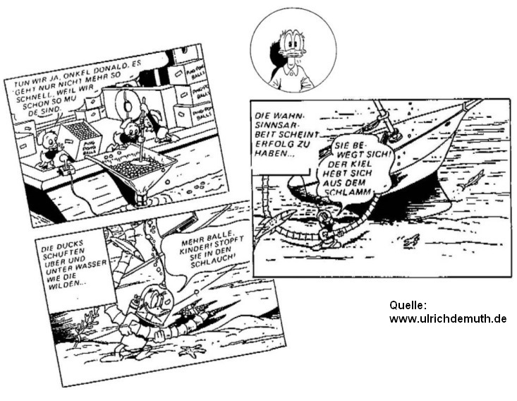 Viele faszinierende Effekte sind unerforscht. Das lernen wir aus dem oben stehenden Lexikon. Interessant ist auch unter anderem, warum Butterkeks krümelt und warum Spaghetti bei Biegung in mehrere Teile zerbricht. Brechen sollte eine Spaghetti nach der Physik irgendwo in der Mitte an einer Schwachstelle, und nicht mit einem Knacks in mehrere Teile. Auch hierfür gab es schon Ansätze - bis jetzt aber ohne schlüssige Erklärung. Eine andere unerforschte Eigenart besitzen Rolltreppen deutscher Ingenieurskunst. Bis heute konnte noch keiner erklären, warum der Handlauf bei einer Rolltreppe nie mit der gleichen Geschwindigkeit läuft, wie die Fahrtreppe. Dies führt zu dem unangenehmen Effekt, man sei betrunken, oder man kippe nach vorne oder nach hinten während der Fahrt weg. Ein mehrmaliges Nachfassen ist unerlässlich. Am Hauptbahnhof Frankfurt wurde bis jetzt die Maximalabweichung ermittelt: So erfährt man bei einer Fahrt vom S-Bahnsteig zur Zwischenebene in Richtung Bahnhofs-Haupthalle einen Versatz von 45 cm zur Fahrtreppe. Umgerechnet auf eine Fahrtgeschwindigkeit von 0,5 Meter pro Sekunde (1,8 km/h), 0,65 Meter pro Sekunde (2,34 km/h) oder maximal 0,75 Meter je Sekunde (2,7 km/h) bewegen sich die Abweichungen dick im Prozentbereich. Leider gibt es für diese gefährliche Abweichung keine Norm oder Prüfangaben, obwohl es derer viele für Fahrtreppen gibt. Die anfängliche Annahme, daß dies mit dem Steigungswinkel oder der Anzahl "daranhängender" Personen zu tun hat, wurde nicht bestätigt. Auch Fahrsteige - wie auf den Verbindungswegen am Frankfurter Flughafen oder der Messe Frankfurt - besitzen den Gummibandschlupf. Bei der weiteren Erforschung stützte man sich anfänglich darauf ab, daß es über die Umschlingung des Hauptantriebsrades einen "Schlupf" gibt. Hierauf beruht auch die Namensgebung des Effekts. Dies jedoch muß angesichts eines Umschlingungswinkels am Antriebsrad von mehr als 220 Grad verneint werden. Bleibt also die Getriebeauslegung und der Antriebsrad-Durchmesser ... Abnutzung an diesem ? Bei erhöhter Abnutzung müßte also mit der Zeit das Band immer schneller laufen ?! Dies würde vielleicht auch erklären, warum andere Bänder langsamer laufen: Wurde hier eventuell das Hauptrad vorsorglich der Abnutzung etwas größer ausgeführt ? Wir warten weitere Berichte ab, und suchen zwischenzeitlich Versatz / Schlupfangaben zu Deutschlands längster Rolltreppe: Auf der Zeche Zollverein, Einweihung vom 19. August 2006 : Überbrückungshöhe 23 Meter Höhe. |